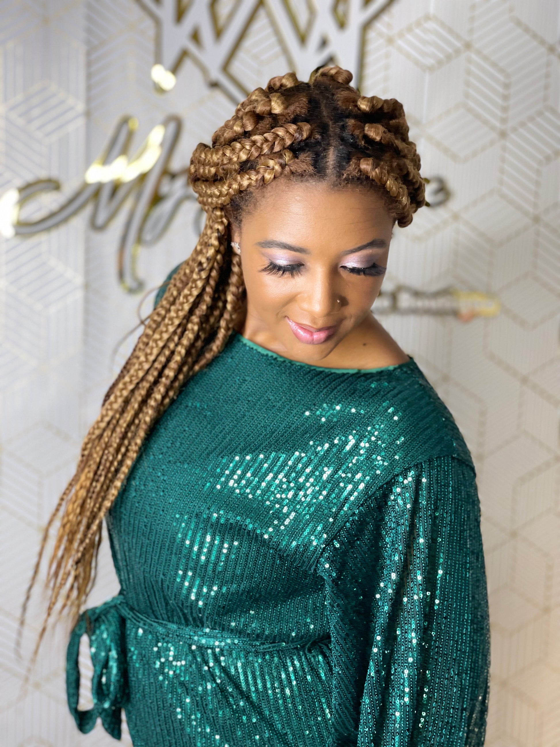 There is so much Sequins, We just couldn’t decide. Enjoy this gorgeous green round neck ballon sleeve dress with a waist band and button with keyhole back.