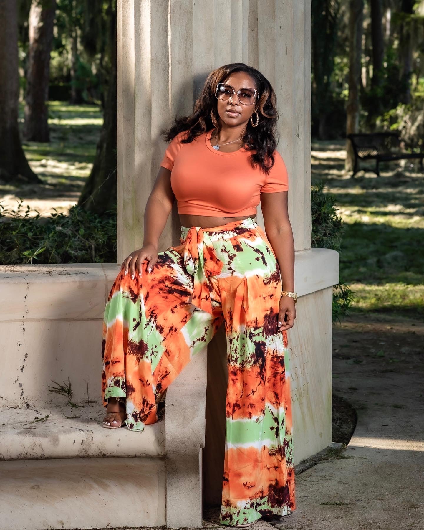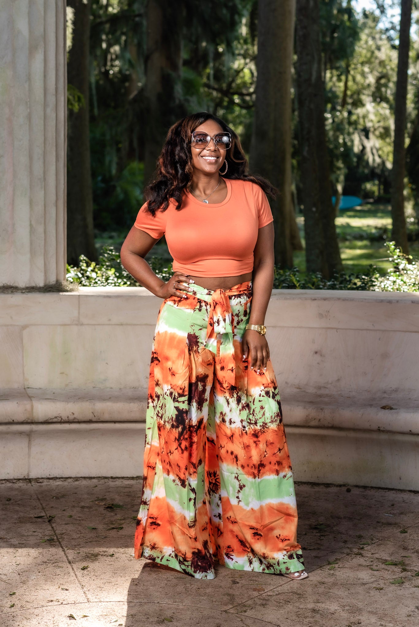 Printed wide leg pants with tie front and zipper back. A pair of the softest pants you will ever own.