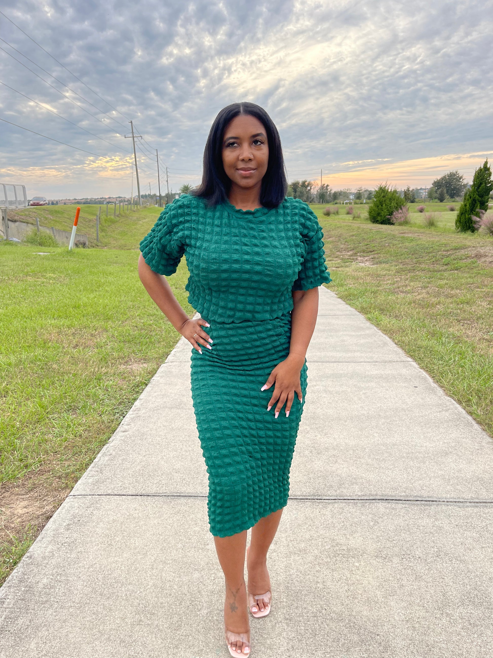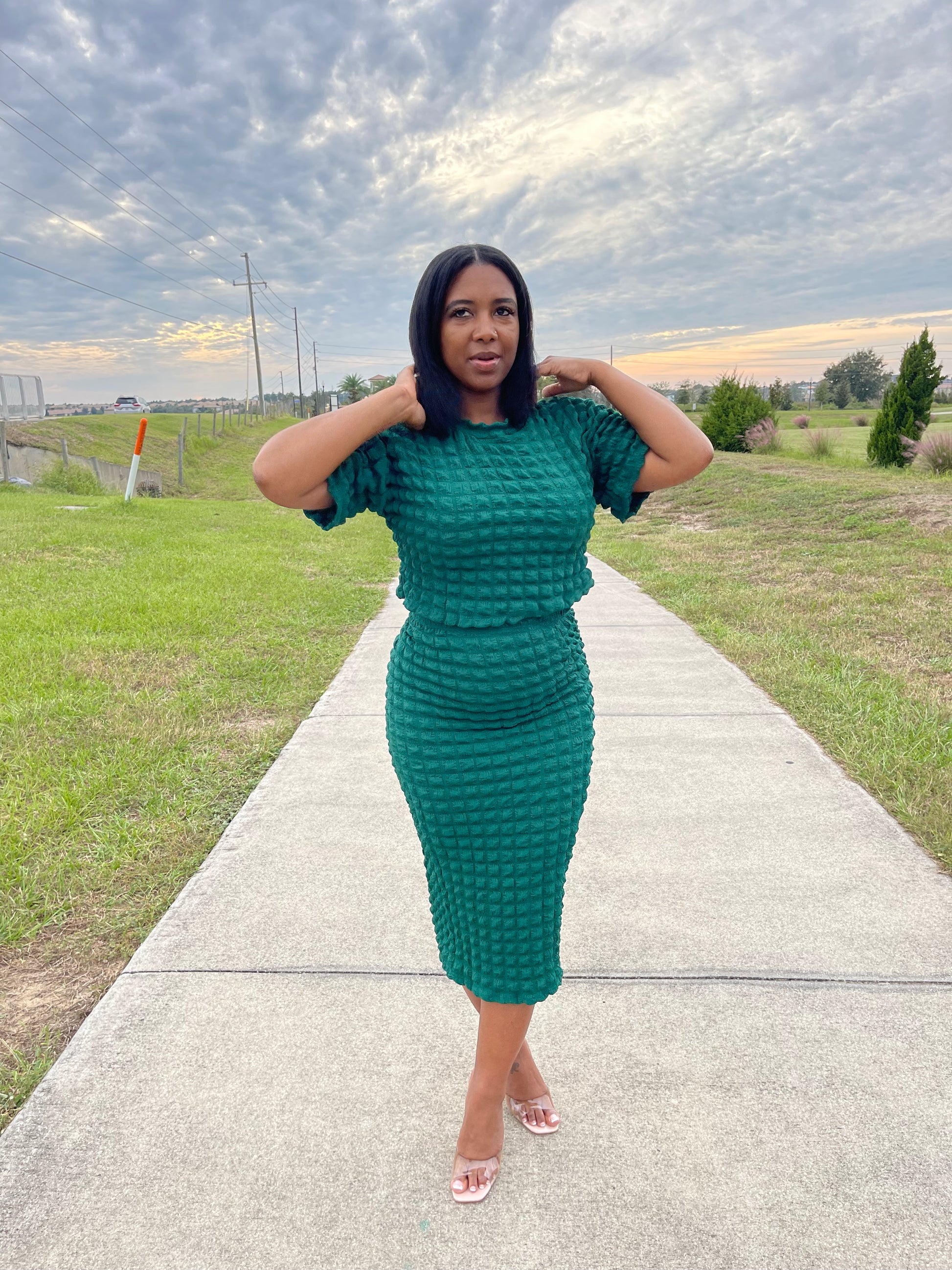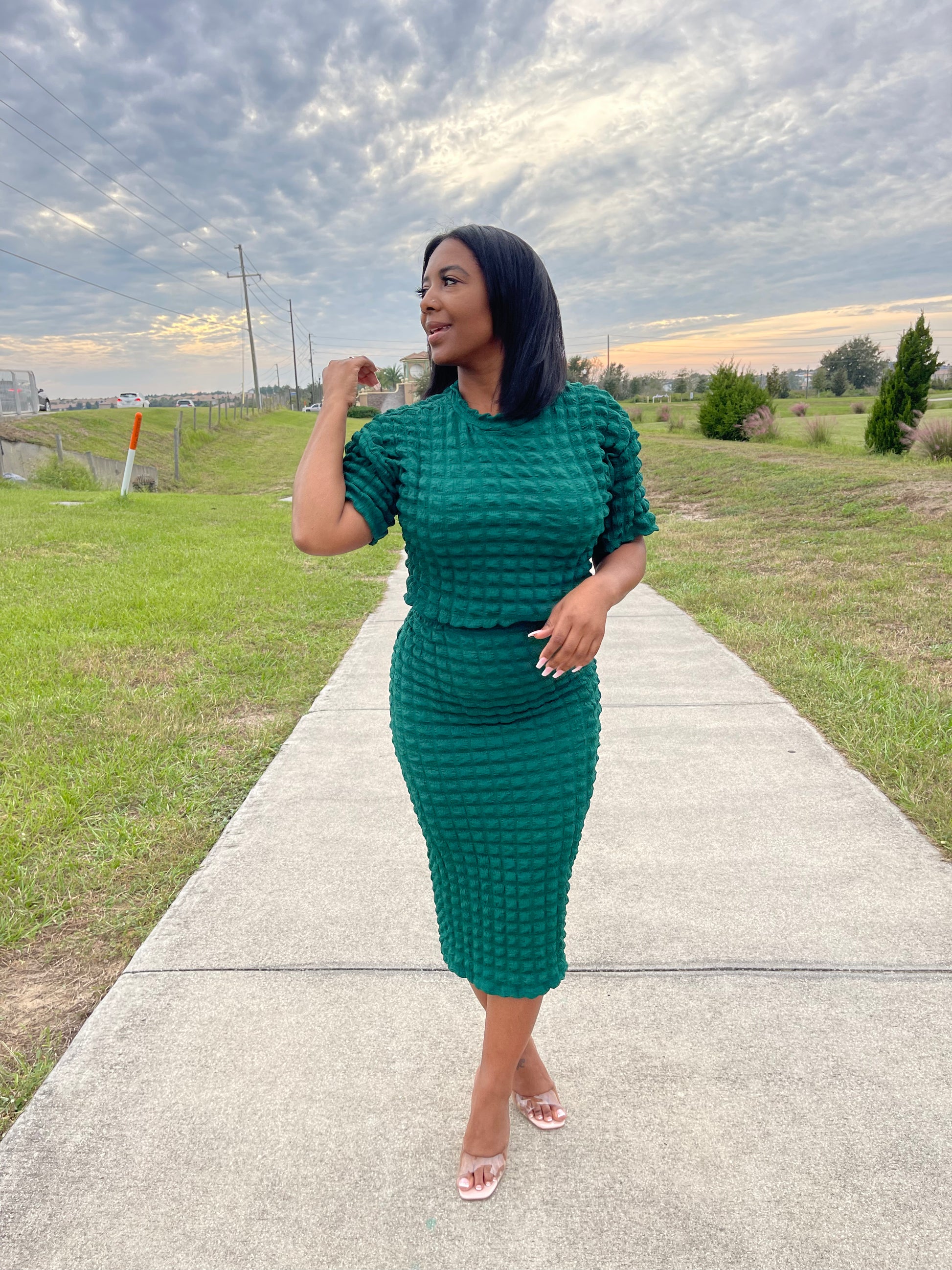 Popcorn midi skirt set