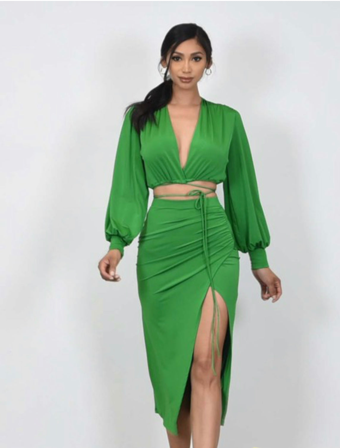 Two piece skirt set. Wear the top as a crop or create the illusion of a dress.