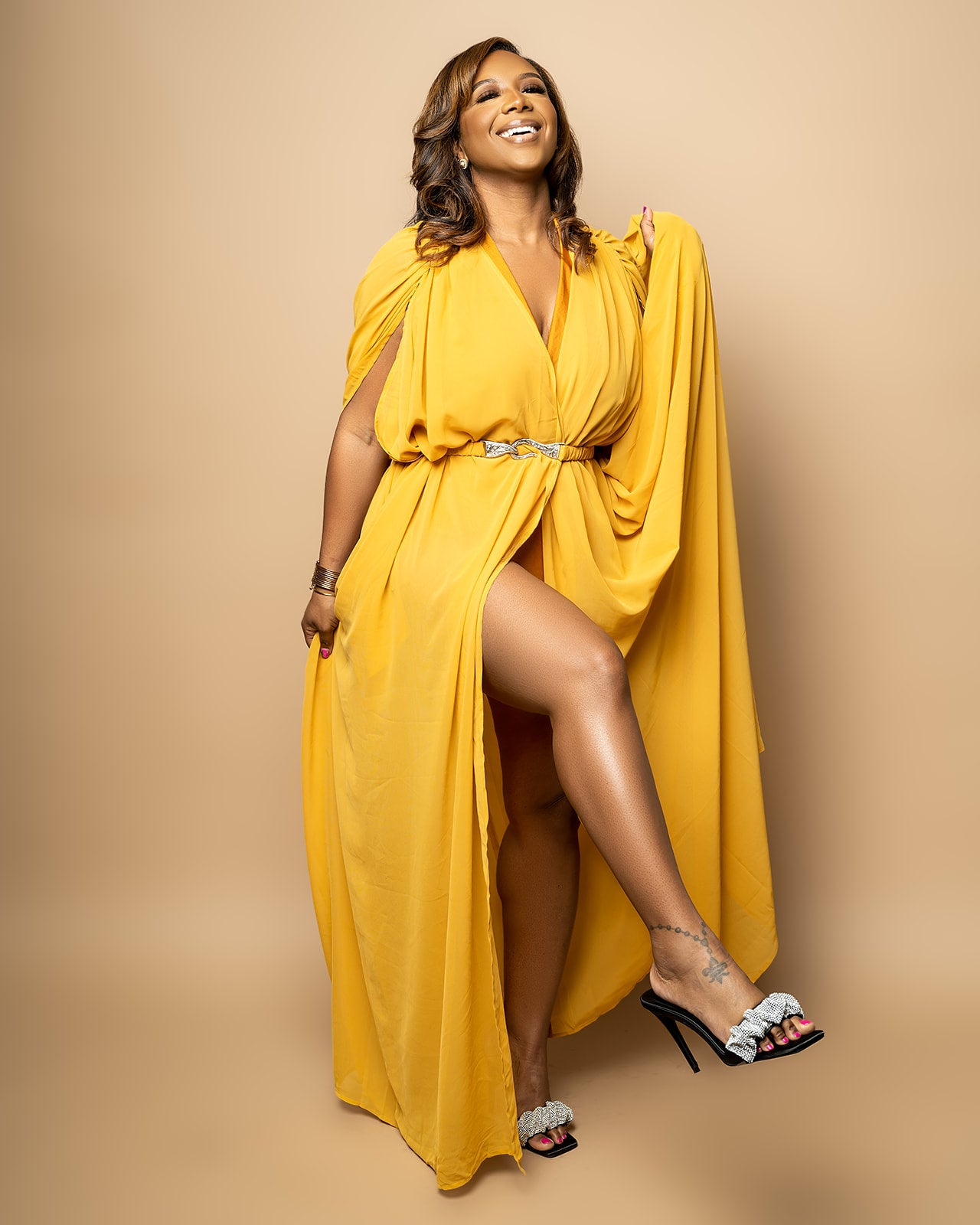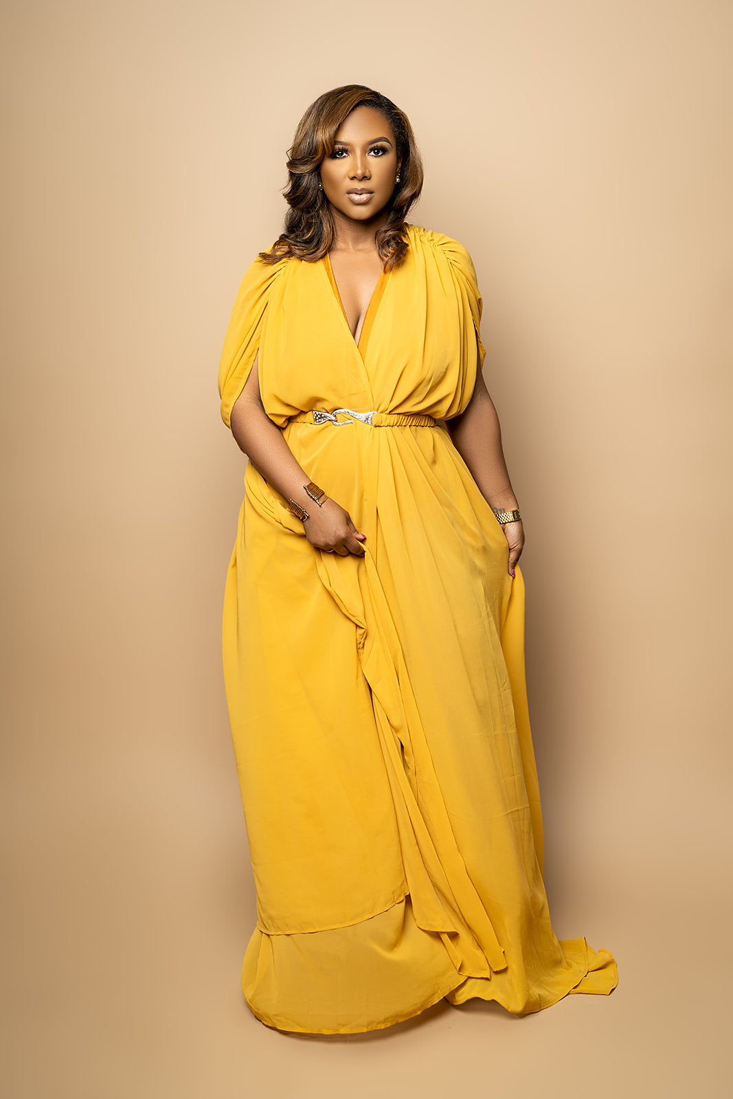 The Queen Nefertiti Swim Coverup comes with a detachable belt and butterfly sleeves.