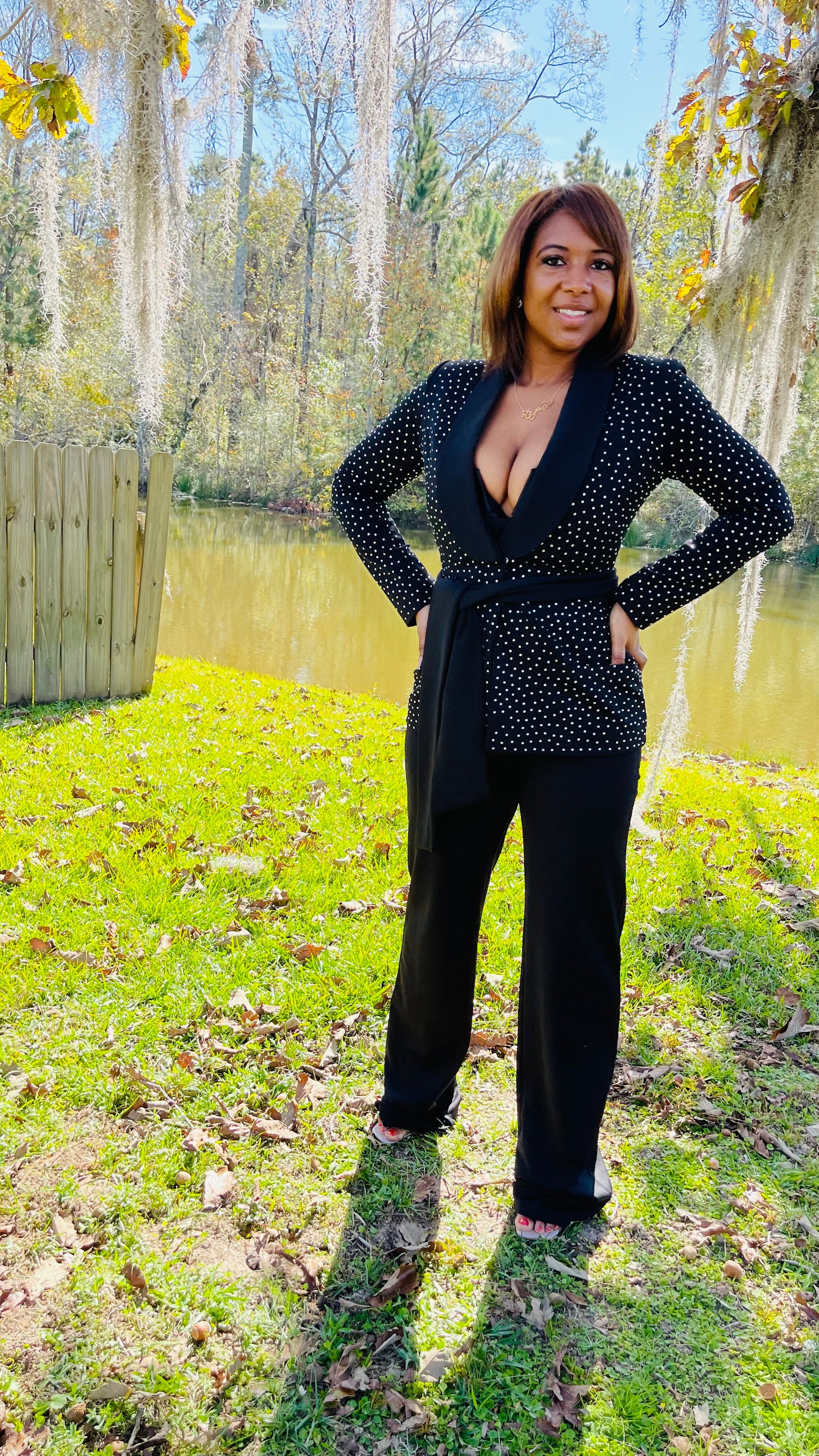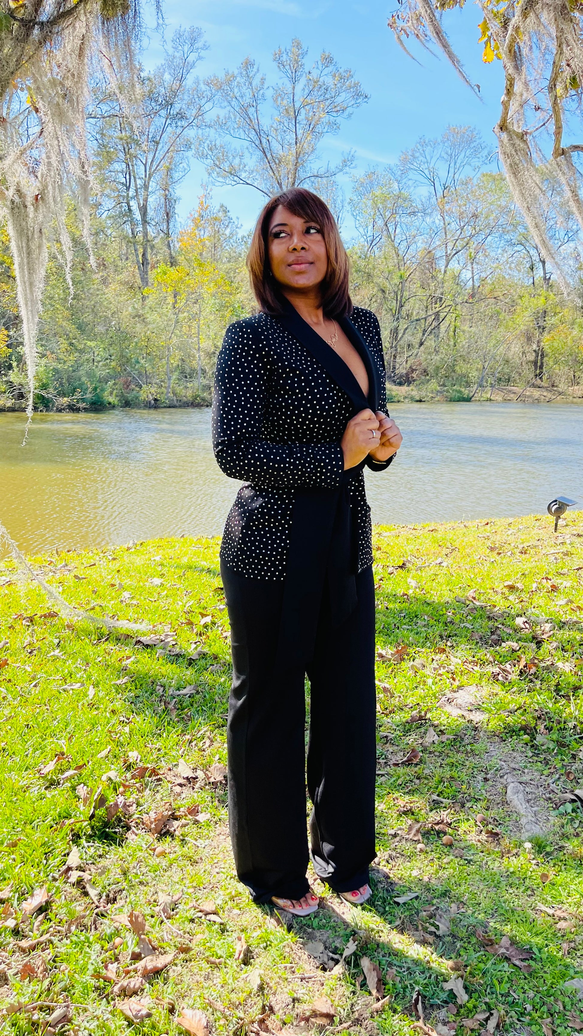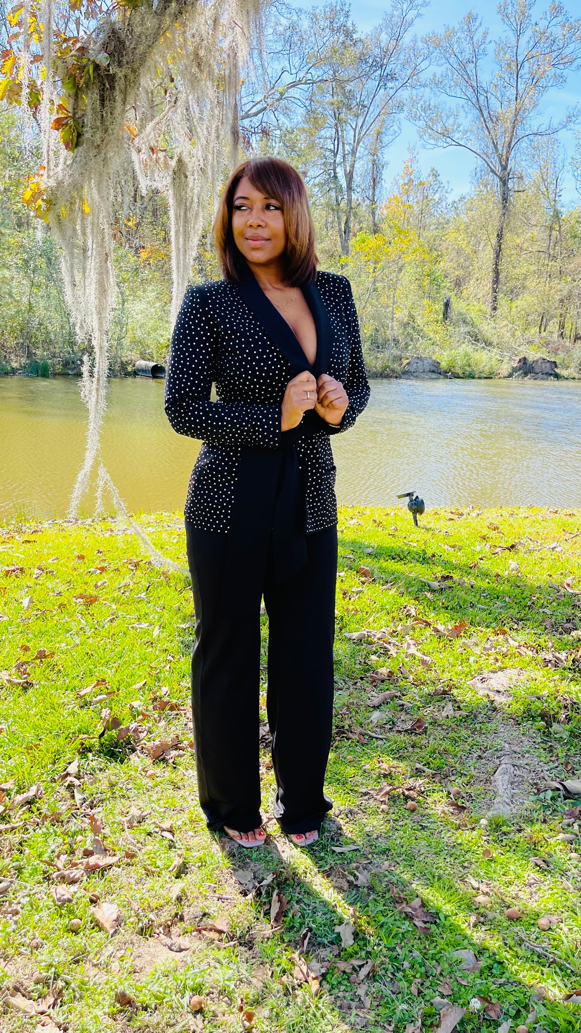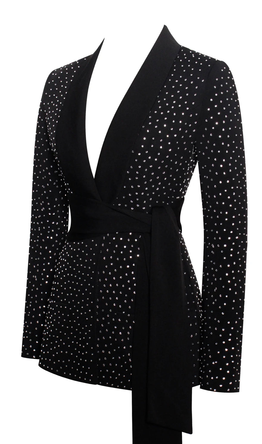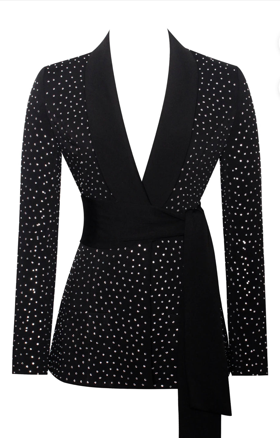 With hand placed crystals and satin lapels the Make A Wish blazer is truly stunning! Made of stretch crepe, this designe has a hidden workable button and built in pockets. Wear with a solid trousers and let The Make A Wish blazer do all the talking.