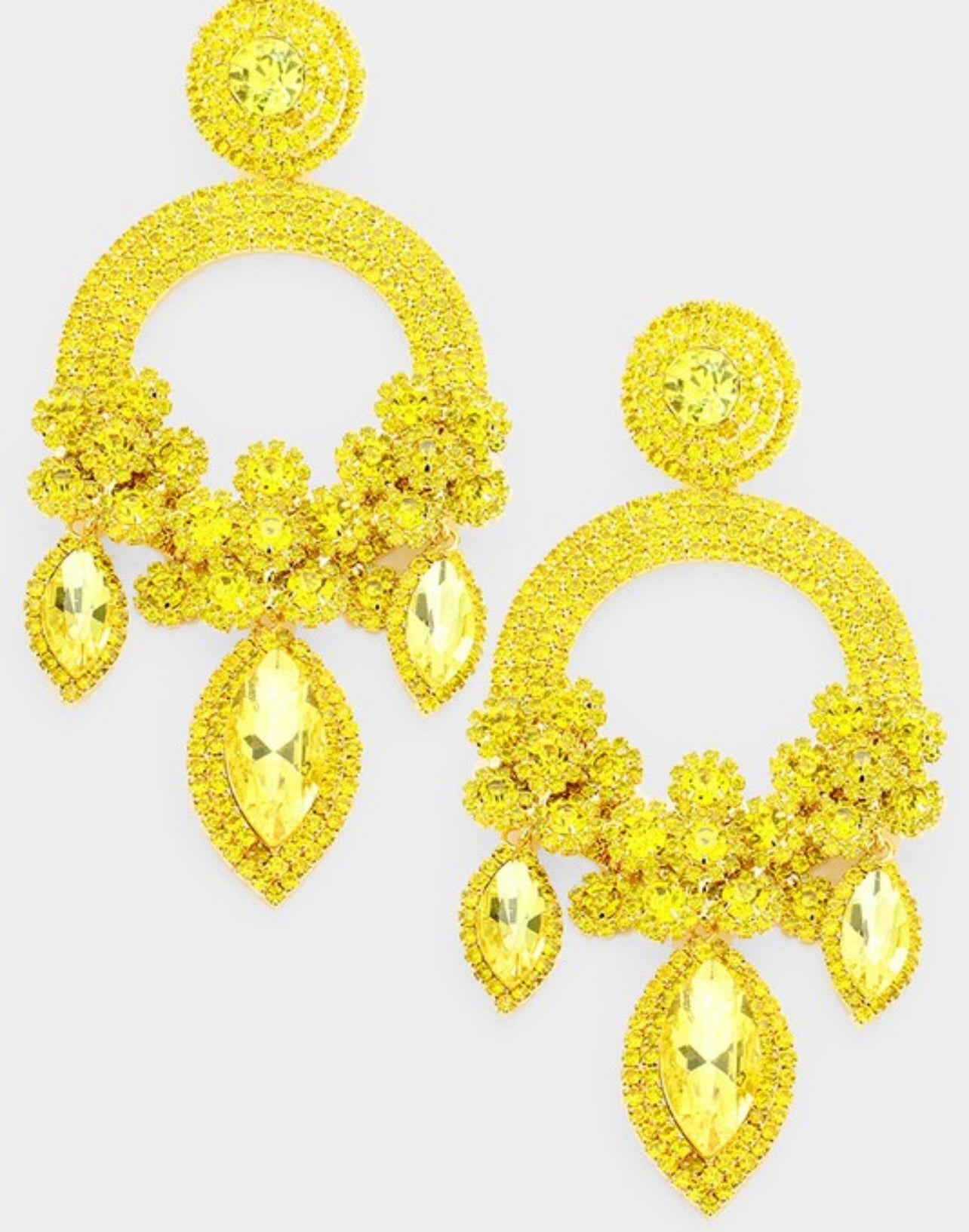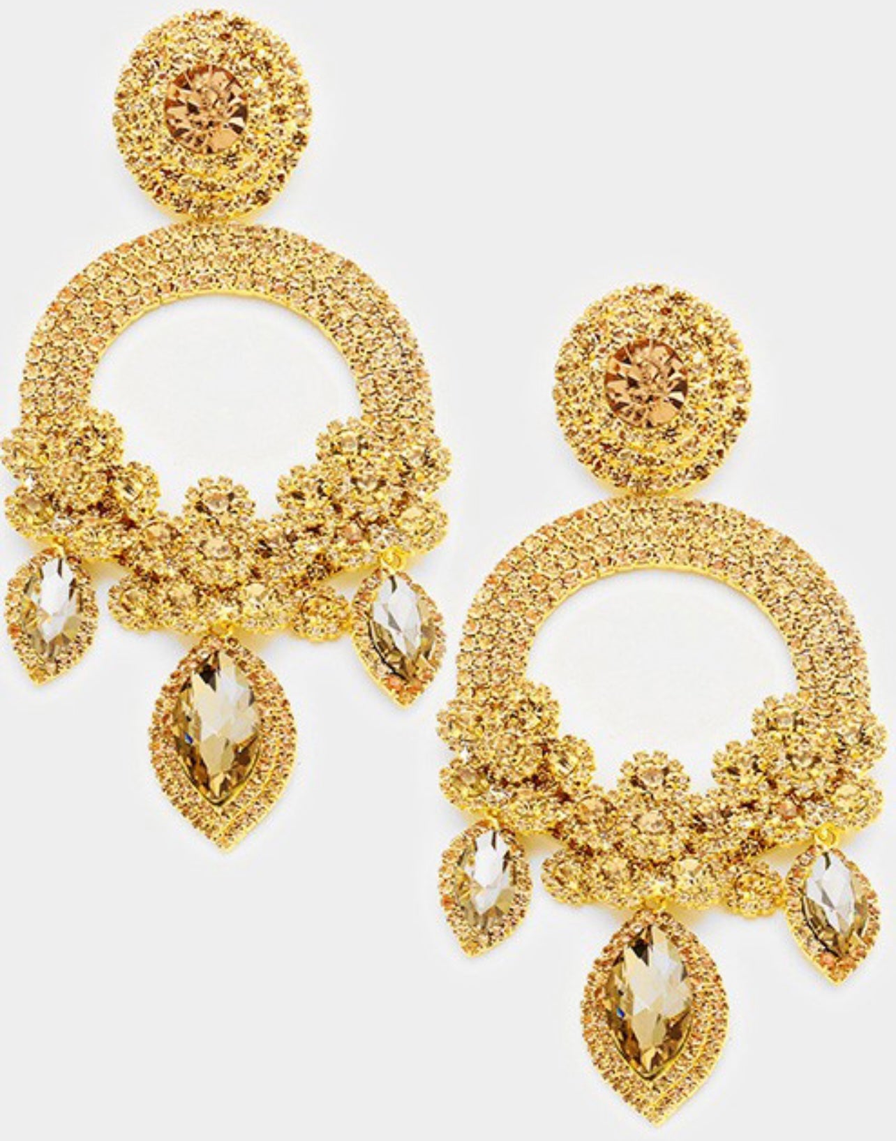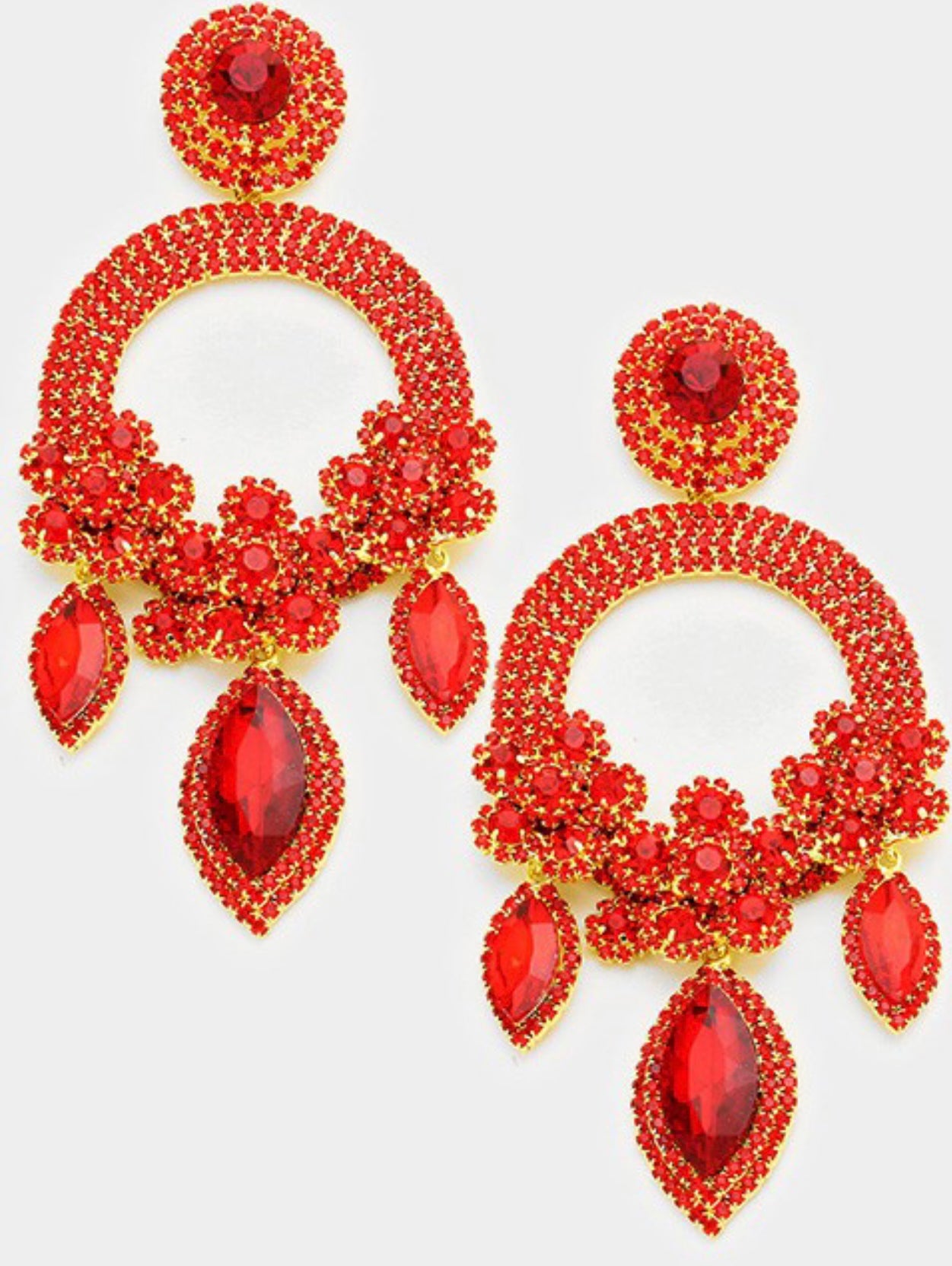 • Oversized Marquise Triple Flower Chandelier Evening Earring