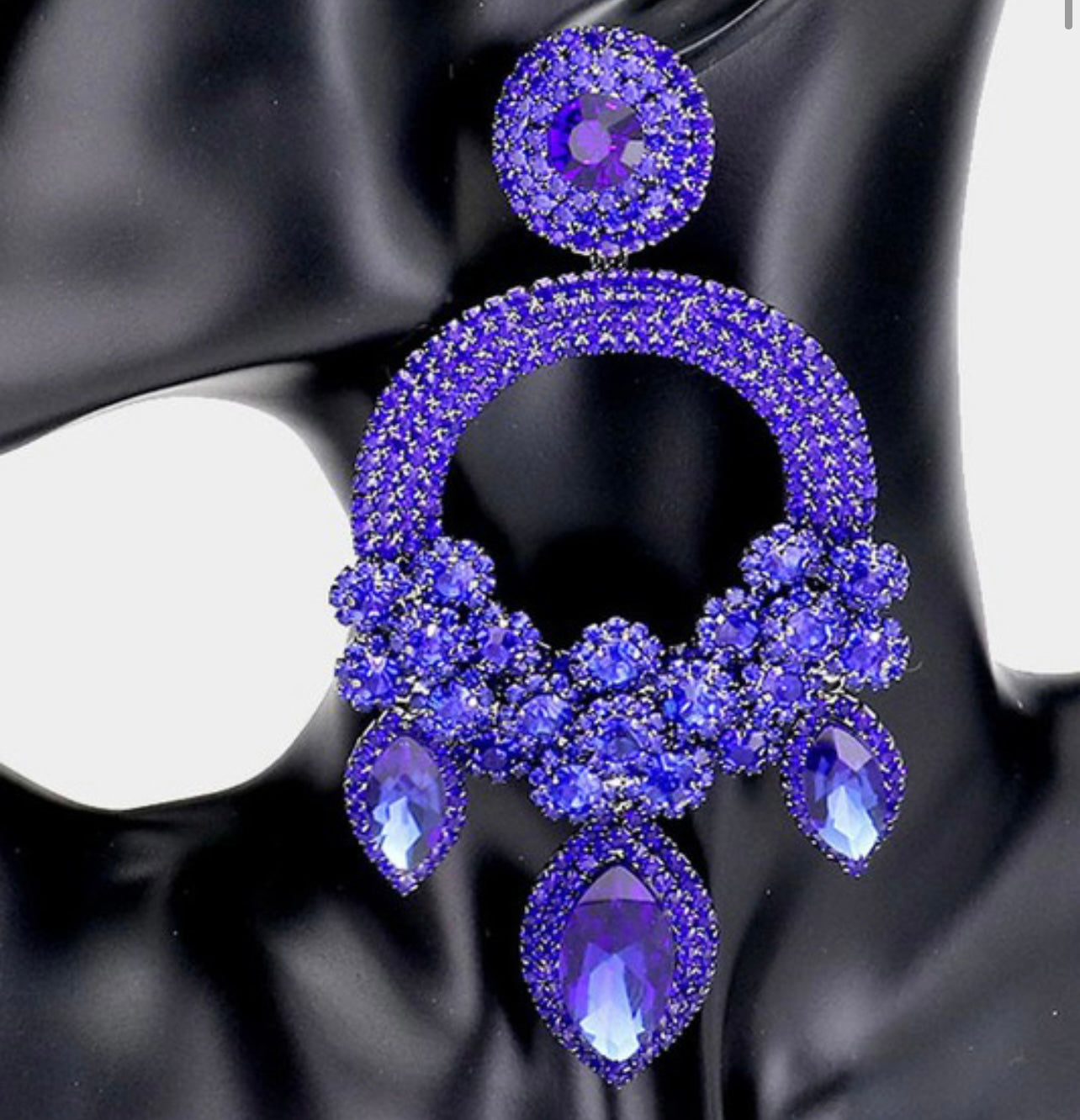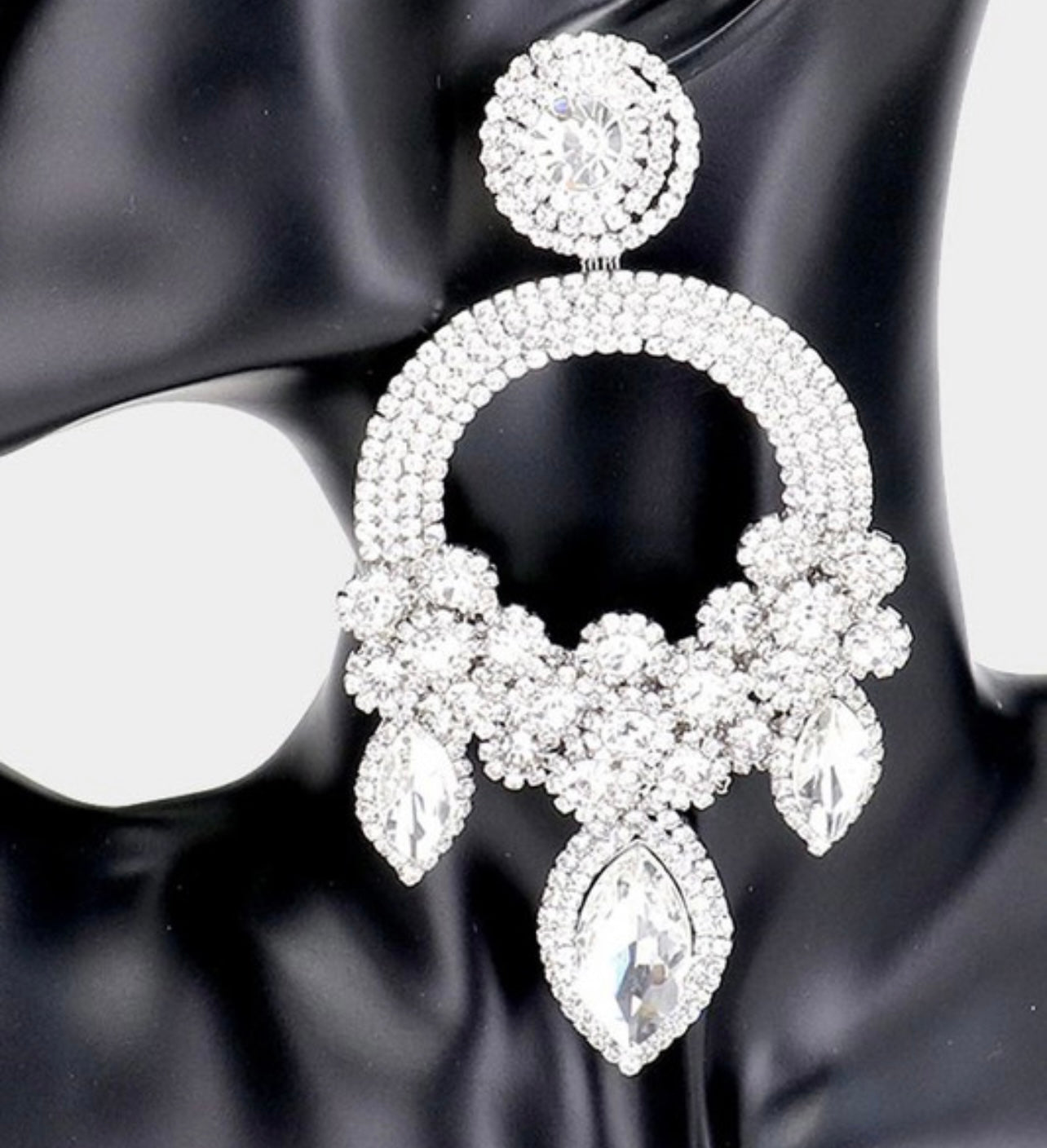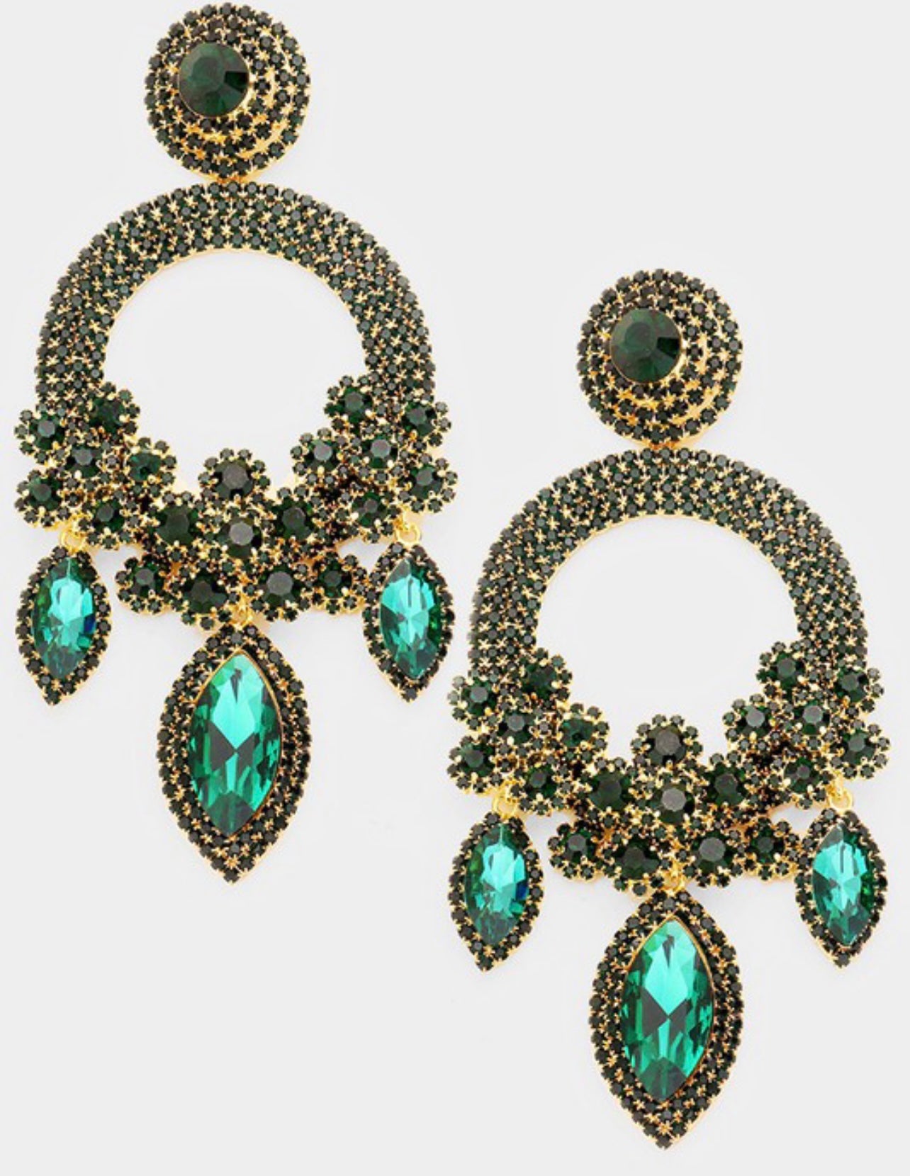 • Oversized Marquise Triple Flower Chandelier Evening Earring