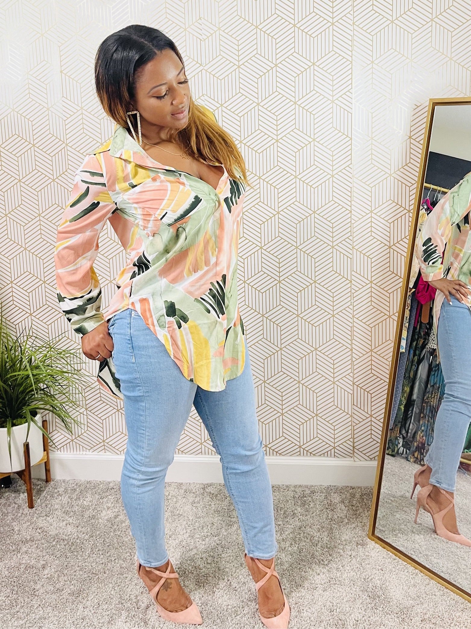 Long sleeve watercolor blouse.